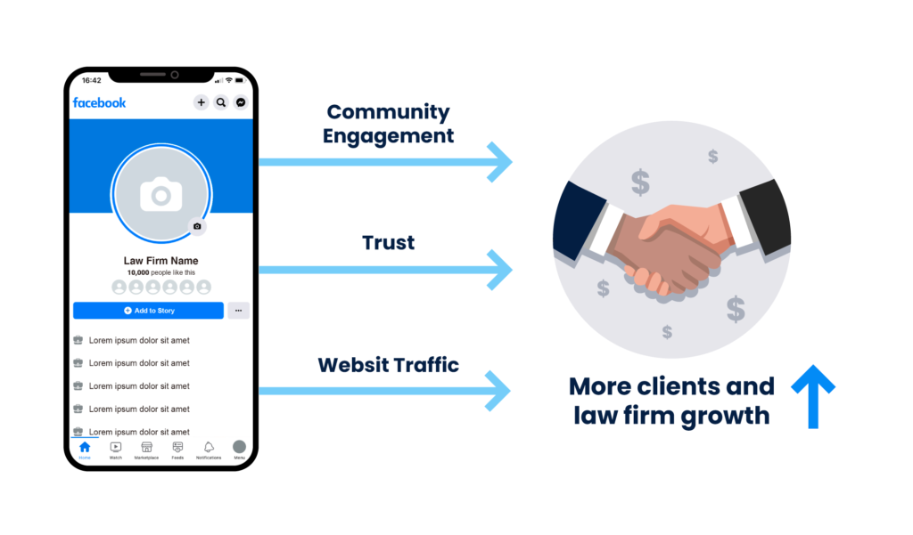 You will have some inbound traffic to your law firm’s profile page. Facebook’s ad platform is able to retarget people who have visited your profile page or interacted with you on Facebook.